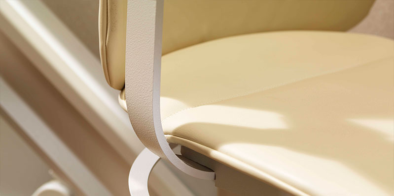 ご自宅の階段に合わせてレールを設置しますが、椅子はたくさんの生地や色の中からお気に入りを選ぶことができるため、オリジナルの階段昇降機を作ることができます。